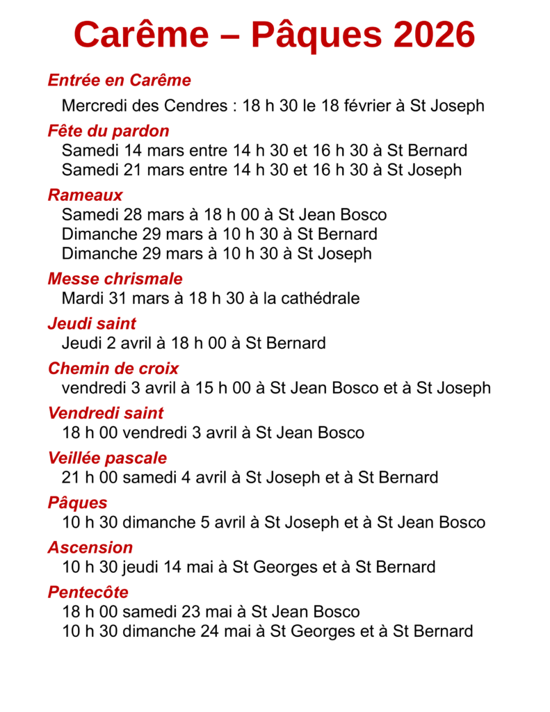 Pentecôte 18h00 samedi 23 mai à St Jean Bosco 10h30 dimanche 24 mai à St Georges et à St Bernard